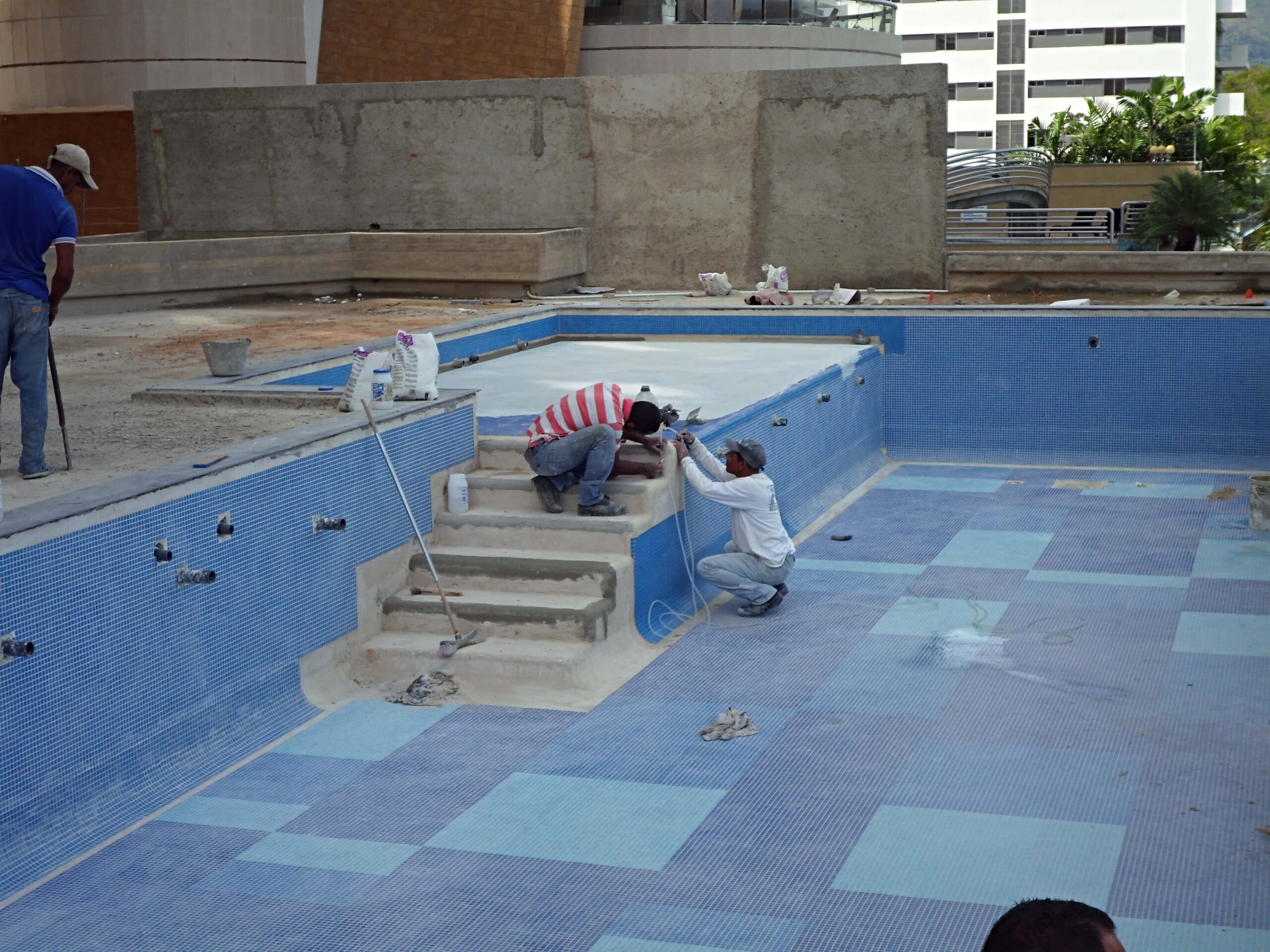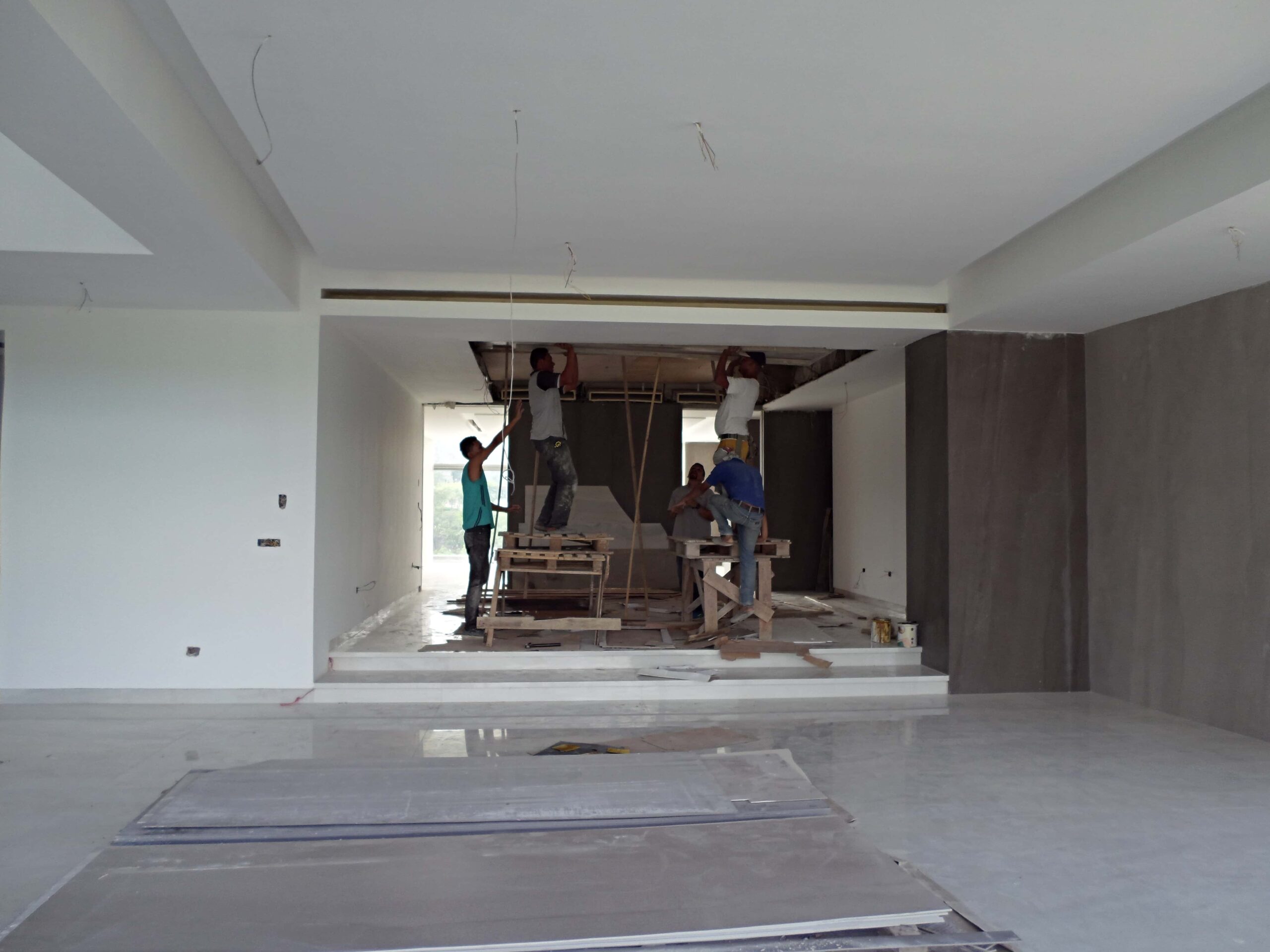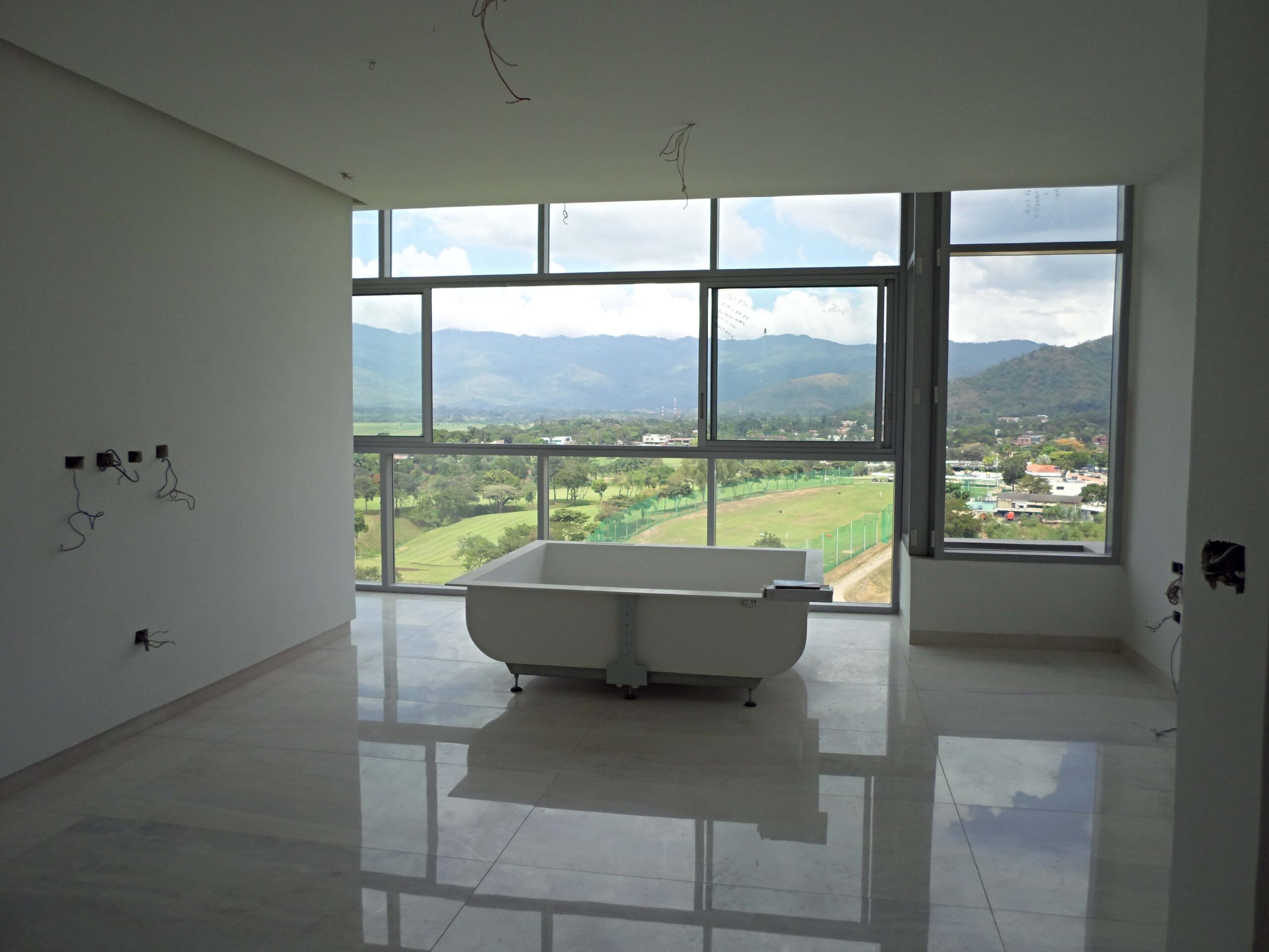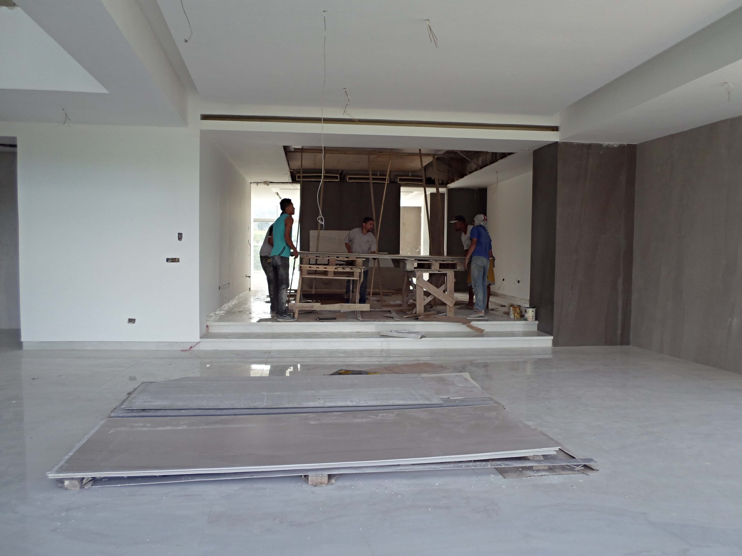 This was indeed confirmed by Renato Casarin, Manager of the allied company Install Group, during a routine inspection of the DGLA team. For Casarin, large-sized claddings prove to be difficult to install, requiring capable personnel as well as special equipment. “We are there to supervise that everything is done correctly: cladding, wall-fitted toilet tanks, faucets and fitted mixer taps, all very modern products,” he stated. In this way, the project’s planification in conjunction with the technical expertise of DGLA to operate each phase of the project have allowed the continuous progress of the tandem labor between Install Group and the team of architects in Maracaibo and Valencia. “In general terms, we have executed 70% of the phases 1 and 2 in all of the building. The installation of the cladding in the common areas have been finalized, around 80% of the pool has been completed, the stairways are at around 90% and the apartment interiors are at around 50%,” he added.