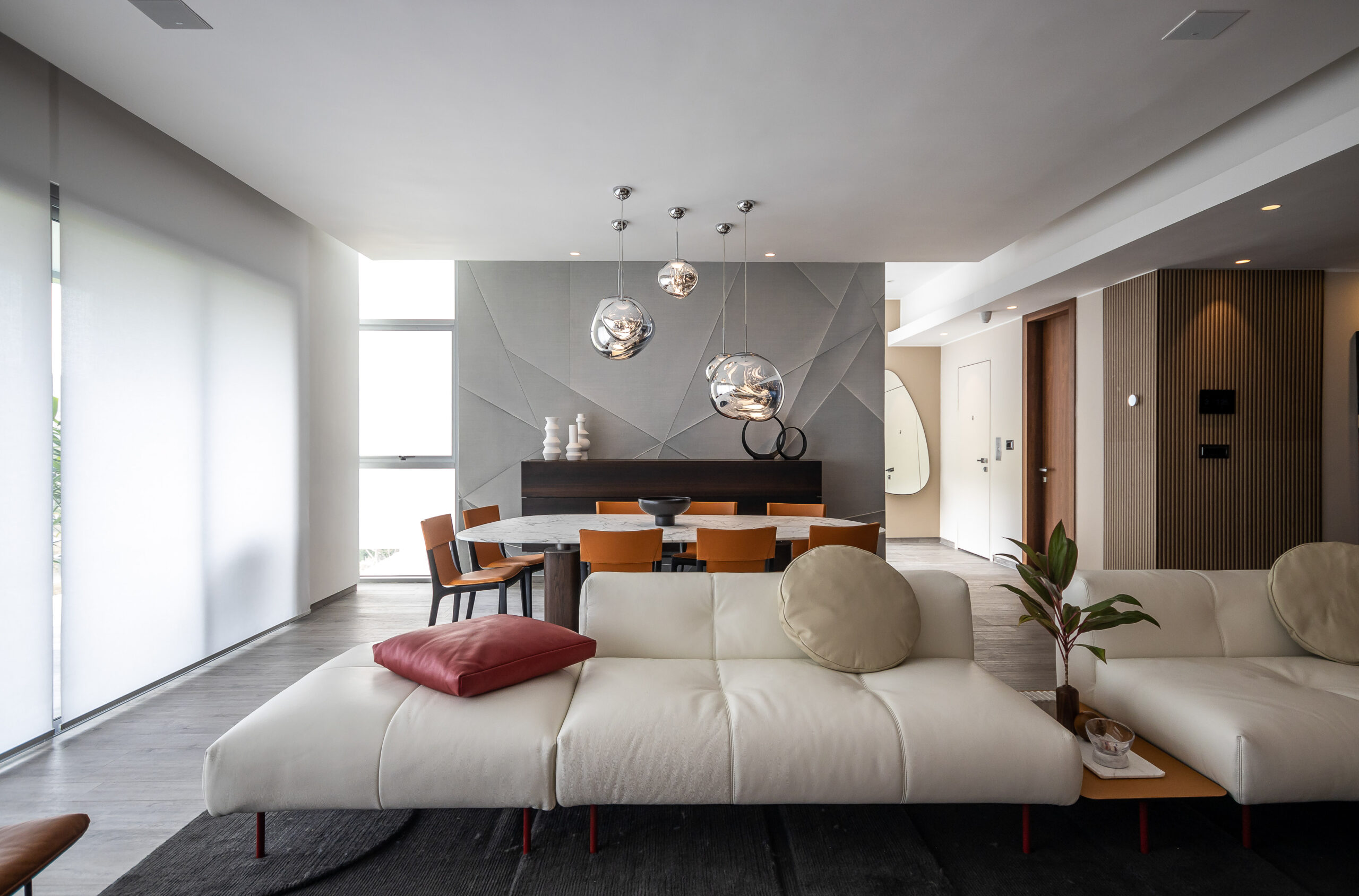 2. El sofá en L invertida configuró un flujo dinámico sin introducir barreras.