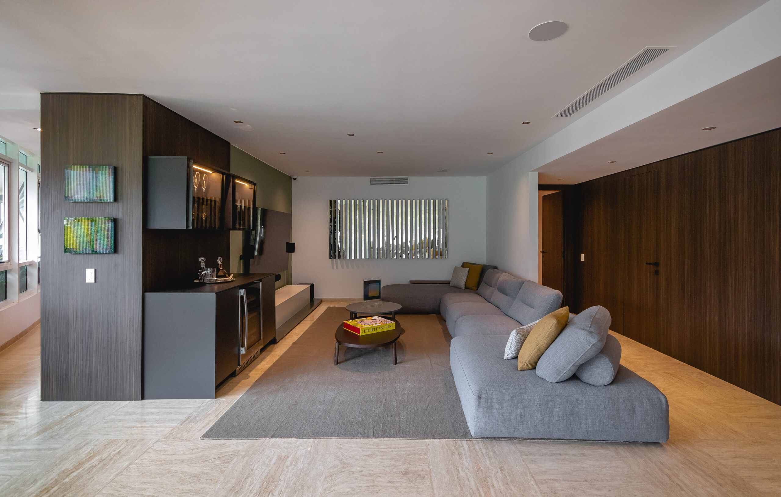El Apto 2DM es un ejemplo preciso de cómo una se ordena un proyecto completo. El punto de partida era un espacio fragmentado (producto de dos viviendas unificadas con pasillos y pequeños habitáculos) frente a un cliente que necesitaba amplitud, continuidad y tranquilidad.