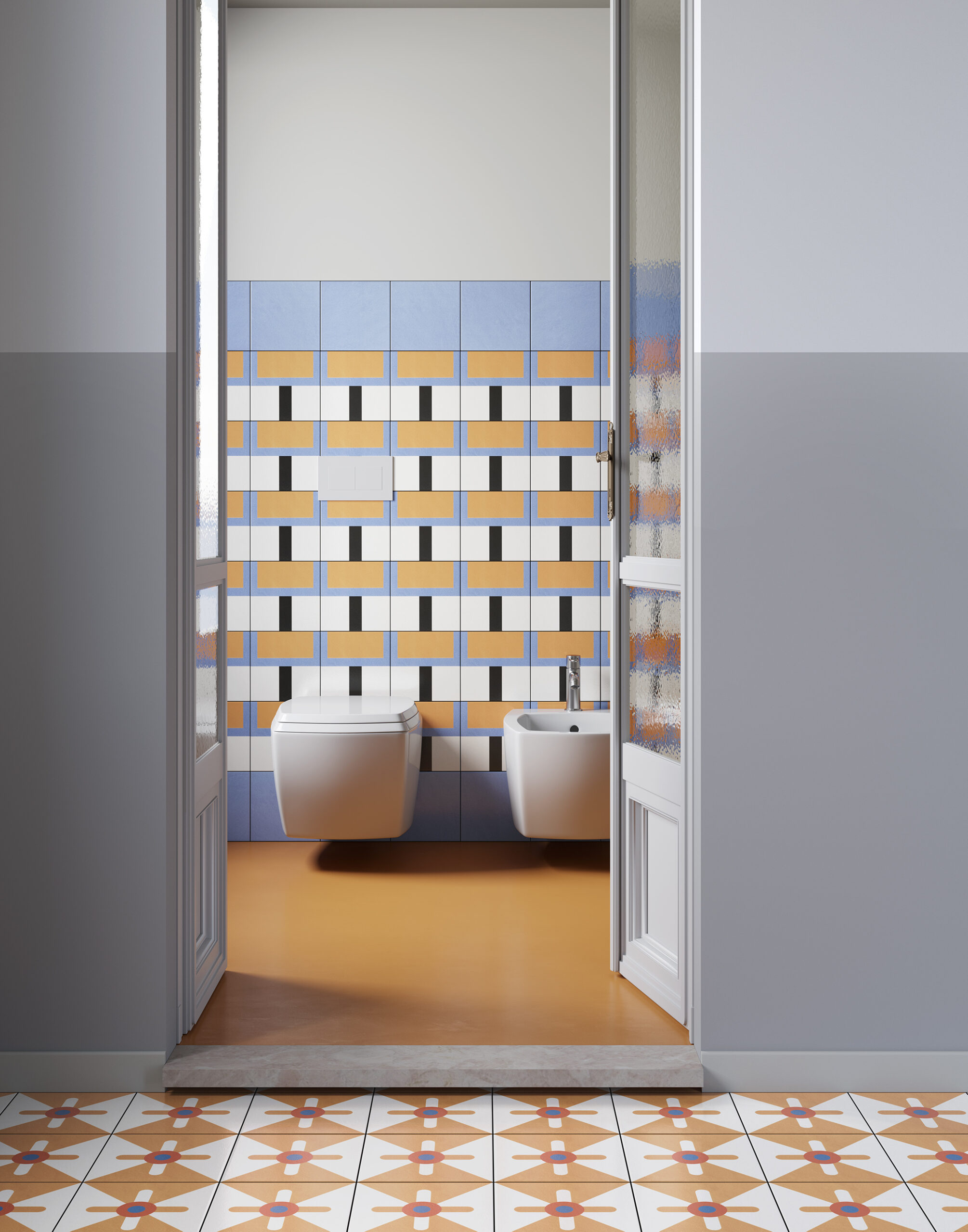 En Mattonelle Margherita, el protagonismo lo asume el color. A través de gres porcelánico esmaltado, la colección combina una base formal contenida con una exploración vibrante de tonalidades y acabados satinados. La superficie deja de ser un fondo neutro y se convierte en una presencia que estructura visualmente el interior.