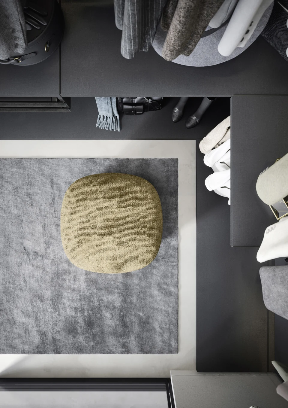 En el esquema de asientos ottoman Loto, la diseñadora traslada esa claridad a una escala más íntima. Su silueta suavemente cónica aporta dinamismo contenido, convirtiéndolo en una pieza auxiliar versátil que dialoga con distintos contextos sin imponerse. La sencillez aparente encierra una atención rigurosa a proporciones y equilibrio.